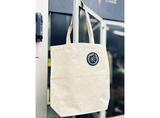 ฉันลองแกะสลักผ้าเดนิมด้วยเลเซอร์ลงบนป้ายแล้ว!