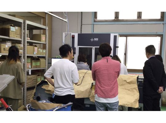 2025/06/16เราเชิญผู้ที่เกี่ยวข้องกับการผลิตหนังสือภาพ มาเยี่ยมชมโรงงานของเรา! ภาพถ่ายแสดงการสาธิตการทำงานของเครื่องจักรประมวลผลด้วยเลเซอร์ -